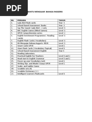 Senarai Bahan Bantu Mengajar Bahasa Inggeris Pdf